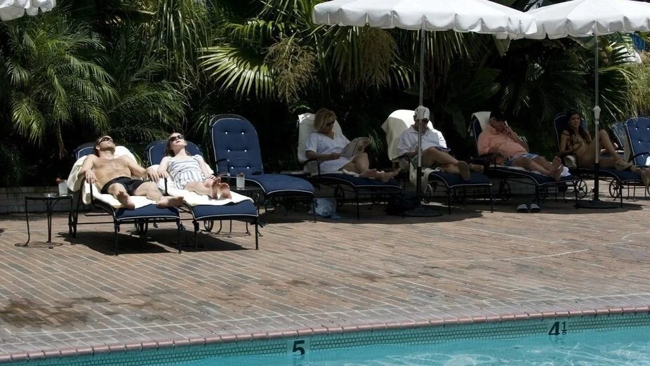 It’s a change from the monotony we’ve felt with Johnny before, and it has more of an emotional impact—this is the only sequence in the movie that features music that is non-diegetic, The Strokes’ “I’ll Try Anything Once”, underscoring Johnny and Cleo’s day out by the Chateau Marmont pool. As they sit in their chairs in the sun the camera slowly pulls back, we think they’re the only ones there, we’ve learned that isolation is a part of Johnny’s world, but soon other people fill the frame—it’s that societal connection Johnny’s been missing throughout the film.