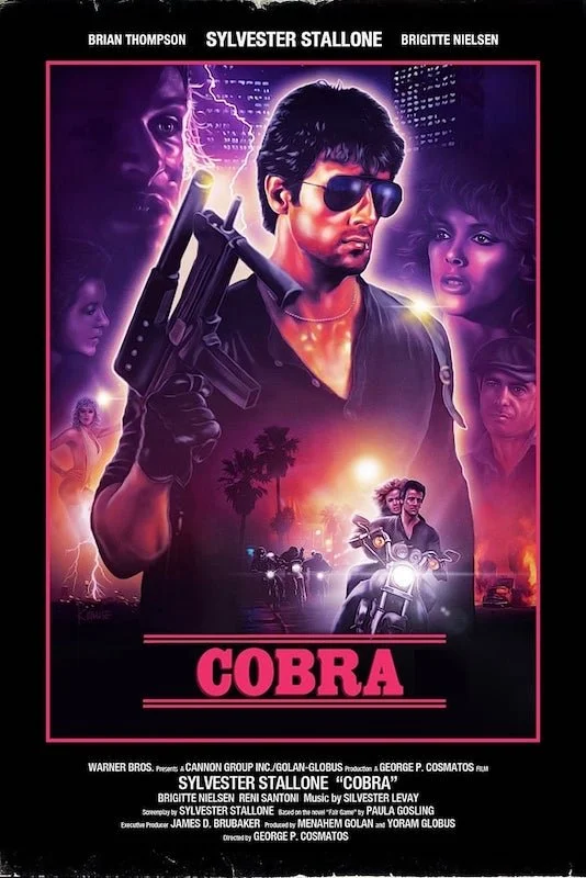 So opens the 1986 action film COBRA starring Sylvester Stallone as the titular super cop. This live-action, Reagan-era hellscape cartoon of fascist law enforcement and crazed cultists finds Stallone reuniting with director George P. Cosmatos (with whom Stallone previously worked on RAMBO: FIRST BLOOD PART 2 the year before) for a film that was intended to be a standard “cop movie” about the title character working to stop a serial killer dubbed “The Night Slasher” (a perpetually sweaty Brian Thompson) and his crazed followers, while at the same time protecting the only witness (Brigitte Nielsen) who has seen the madman’s face and lived to talk about it. However, actually experiencing the film reveals it as one of the strangest—and bleakest—entries in Stallone’s lengthy career.