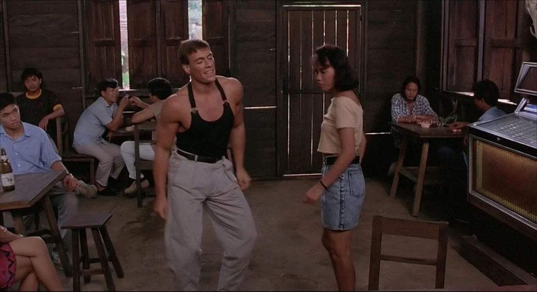It’s also worth noting that this was filmed in the late ‘80s and intended for an American audience. Martial Arts movies were still very niche in the states at the time and with Van Damme just coming off the grittier pit-fighting retaliation rendering BLOODSPORT (1988), it made sense to make use of the Muay Thai motif melodrama as means of differentiating. This is prior to FLASH POINT (2007) and THE RAID: REDEMPTION (2011) people! Showing Van Damme, Alexio, and Qissi really going full-bore would be a Marty McFly 1955 guitar solo moment for moviegoers expecting All Valley Karate action! As such, fight scenes and training sequences were geared towards the performer’s physical strengths (JCVD’s splits/kicks, Alexio’s athleticism, and Qissi’s vicious visage) and made all the more dramatic with a liberal use of slow motion.