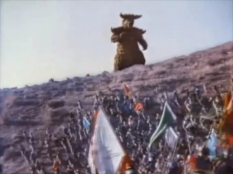 Compared to some of the more traditional entities (Mothra, Godzilla), Pulgasari is on-screen for a fair amount of time which benefits greatly by having Satsuma in the creature's suit. There's even a focus on how soft and gentle the Kaiju can be, as evidenced by when he decimates a forest, in order to gather wood for the rebels.