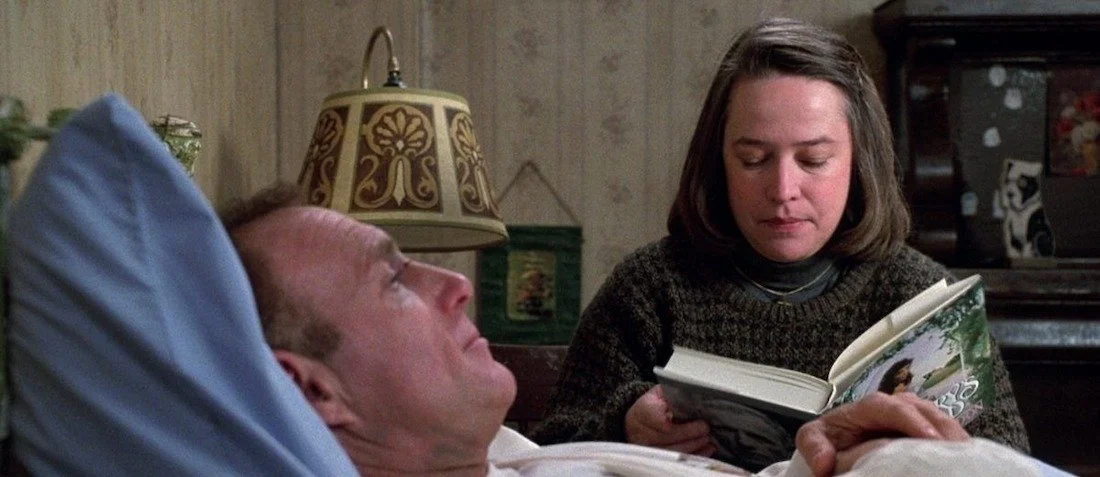 The movie begins with writer Paul Sheldon completing the manuscript for his next book and leaving his cabin to get it to his editor in New York. After getting into a car accident, Paul is pulled from the wreckage by a mysterious figure who gives CPR, grabs his manuscript, and carries him away. The audience is quickly introduced to a nurse named Annie Wilkes who was the mysterious figure that saved Paul’s life. She’s been tending to him for two days and immediately reveals herself as his “number one fan.” Doting on his books, she signals that his Misery novels are her favorite as she’s memorized all eight of them. Annie doesn’t react to Paul’s lack of engagement with her, but the audience takes note of his discomfort with her stating that she knew that he was staying up the mountain and that it was fated for her to save him.