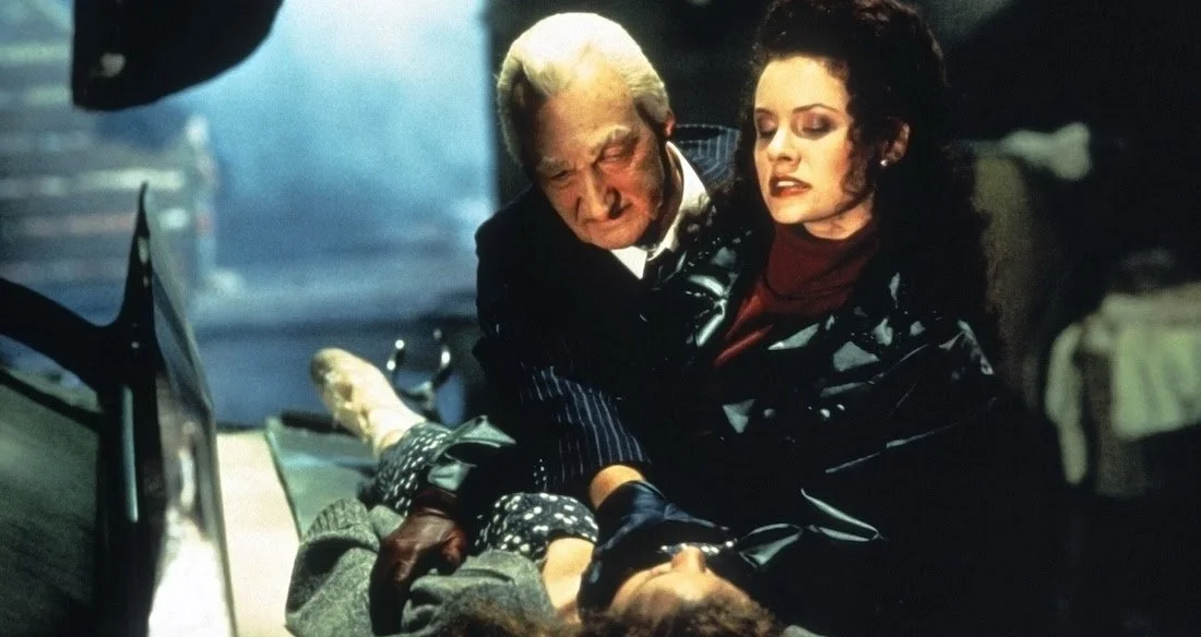 The Mangler itself is a gigantic, formidable bit of gothic architecture that was designed for the film by William Tony Hooper, Tobe’s son. Impressive as it is, they wisely added a human villain to get some more acidic dialogue in the mix. Enter Englund’s Bill Gartley, the soulless owner of Gartley's Blue Ribbon Laundry. No neophyte to ghoulish accouterments, Englund doesn’t let himself get buried under contacts, an eyepatch, latex makeup, and two leg braces and canes. Instead, he leans in on becoming the personification of OSHA’s worst nightmares by supplying poor working conditions, encouraging his overseer to be as abusive as he is, and taking part in sacrifices while just overall being an evil sonofabitch who barks instead of talks.