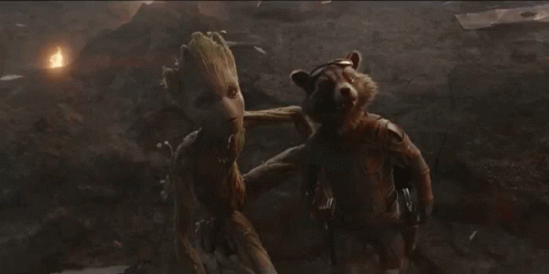 GUARDIANS OF THE GALAXY - Star Lord and Gamora fight, Rocket & Groot trap Gamora and Star Lord, Drax tries to kill Gamora, Rocket threatens Drax.