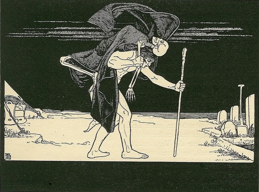 Alongside Golem in the Sitra Achra is the Dybbuk, complete with the illustration by Ephraim Moshe Lilien from the early 20th century, above. Lev describes the dybbuk as “the tortured soul of someone who died.”