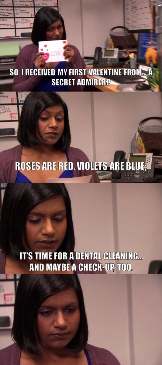Now, of course, jokey, Vinegary Valentines are just as common. Take this example from The Office: