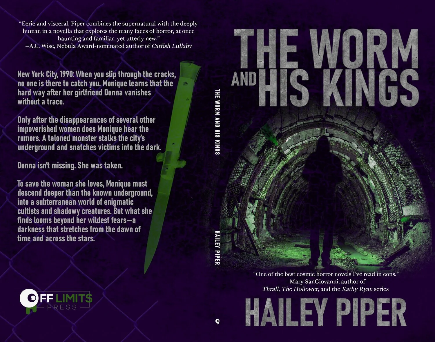 Written by Hailey Piper, The Worm And His Kings (Off Limits Press, 2020) is a novella that follows Monique as she searches for her girlfriend Donna, who’s been missing for three months.